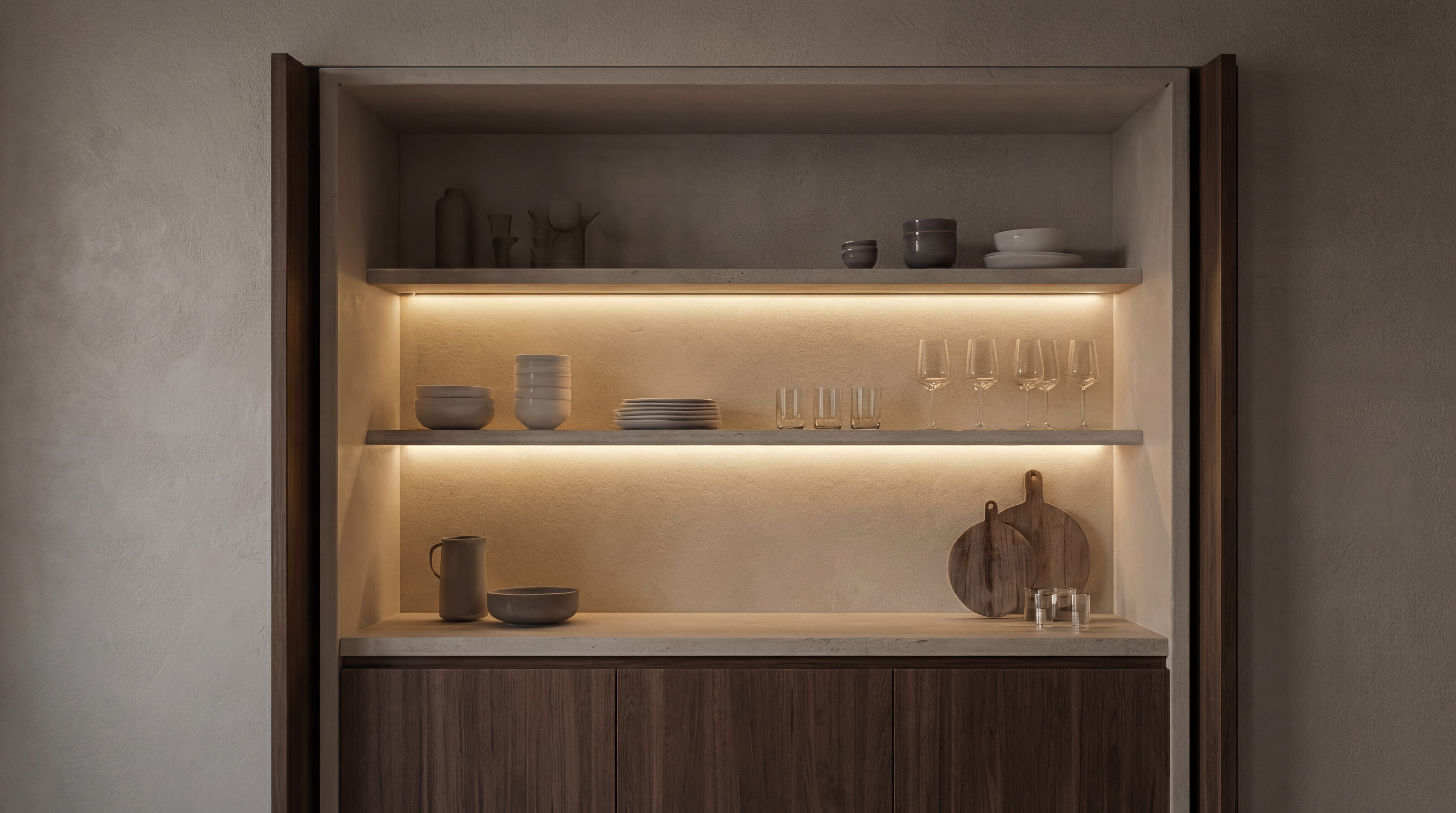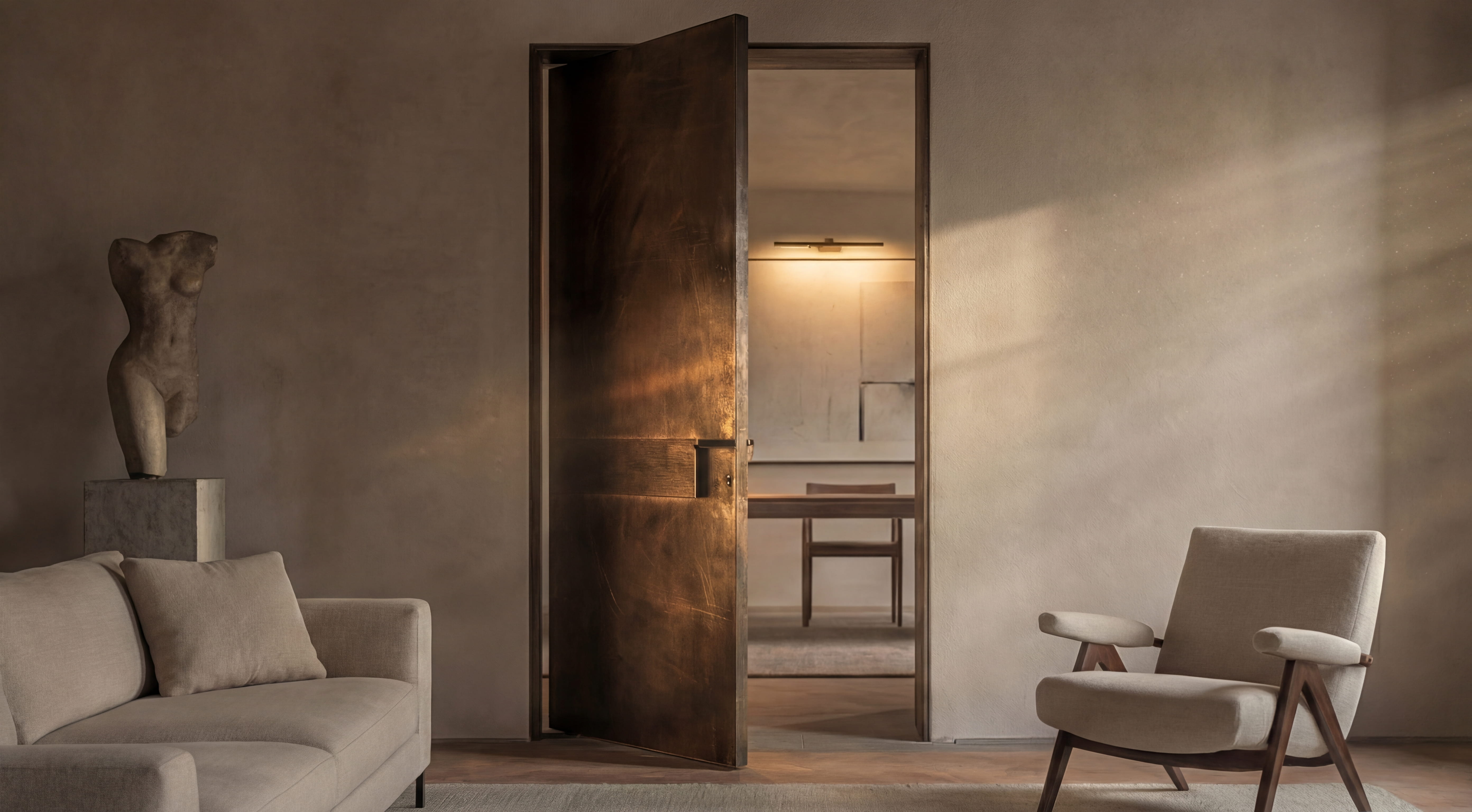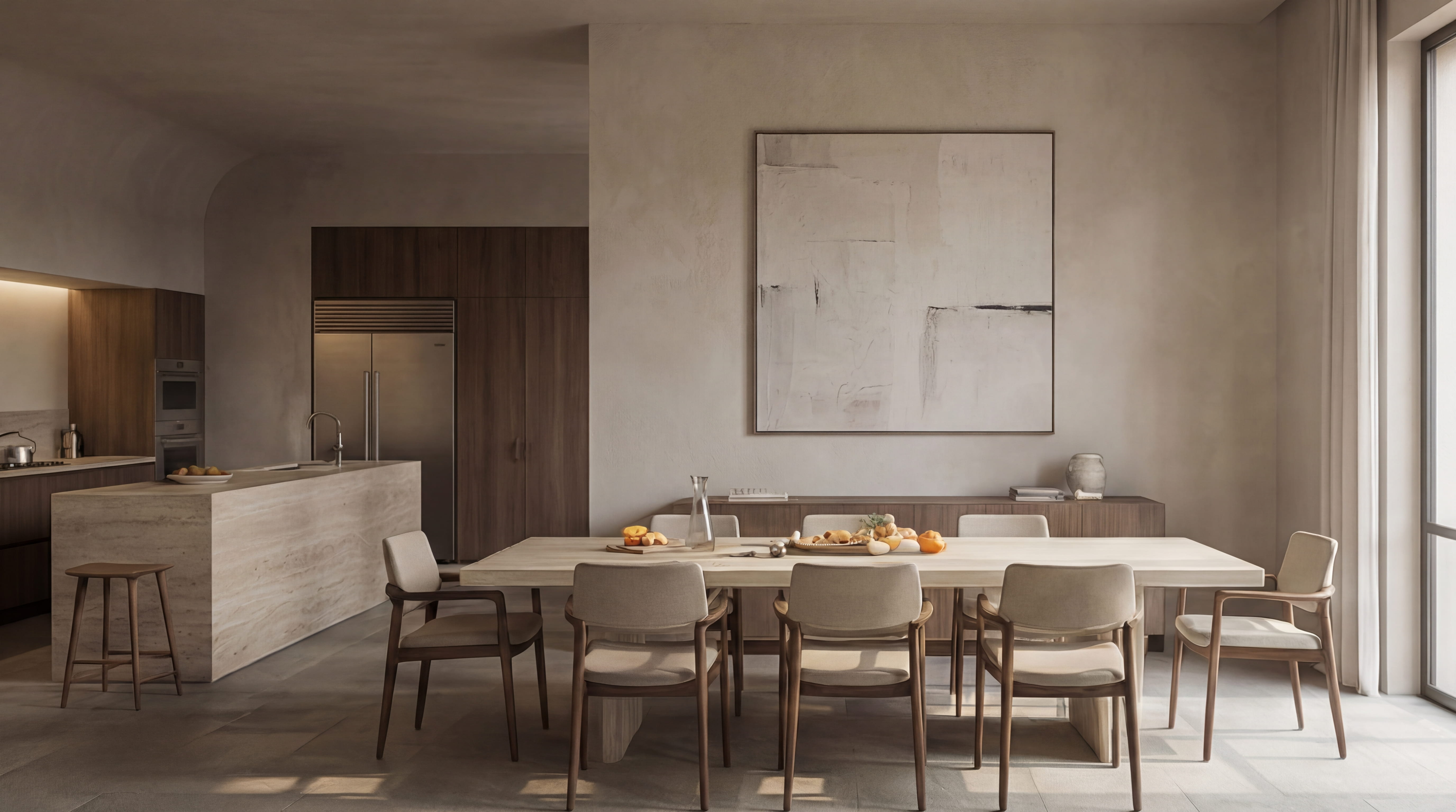 Intervento di riqualificazione per un boutique hotel all’interno di un palazzo storico, fondato su un principio di sottrazione. La formalità originaria degli ambienti — proporzioni, volte, ritmo delle aperture — è stata preservata attraverso un restauro conservativo attento e misurato. L’aggiornamento contemporaneo si affida a un unico gesto coerente: un intonaco a calce continuo che unifica le superfici e amplifica la luce naturale. L’arredo è ridotto all’essenziale. Volumi monolitici in travertino, legno naturale e ottone satinato dialogano con la struttura esistente senza sovrapporsi ad essa. Il progetto costruisce l’esperienza dell’ospite attraverso la materia, la luce e la precisione del dettaglio.